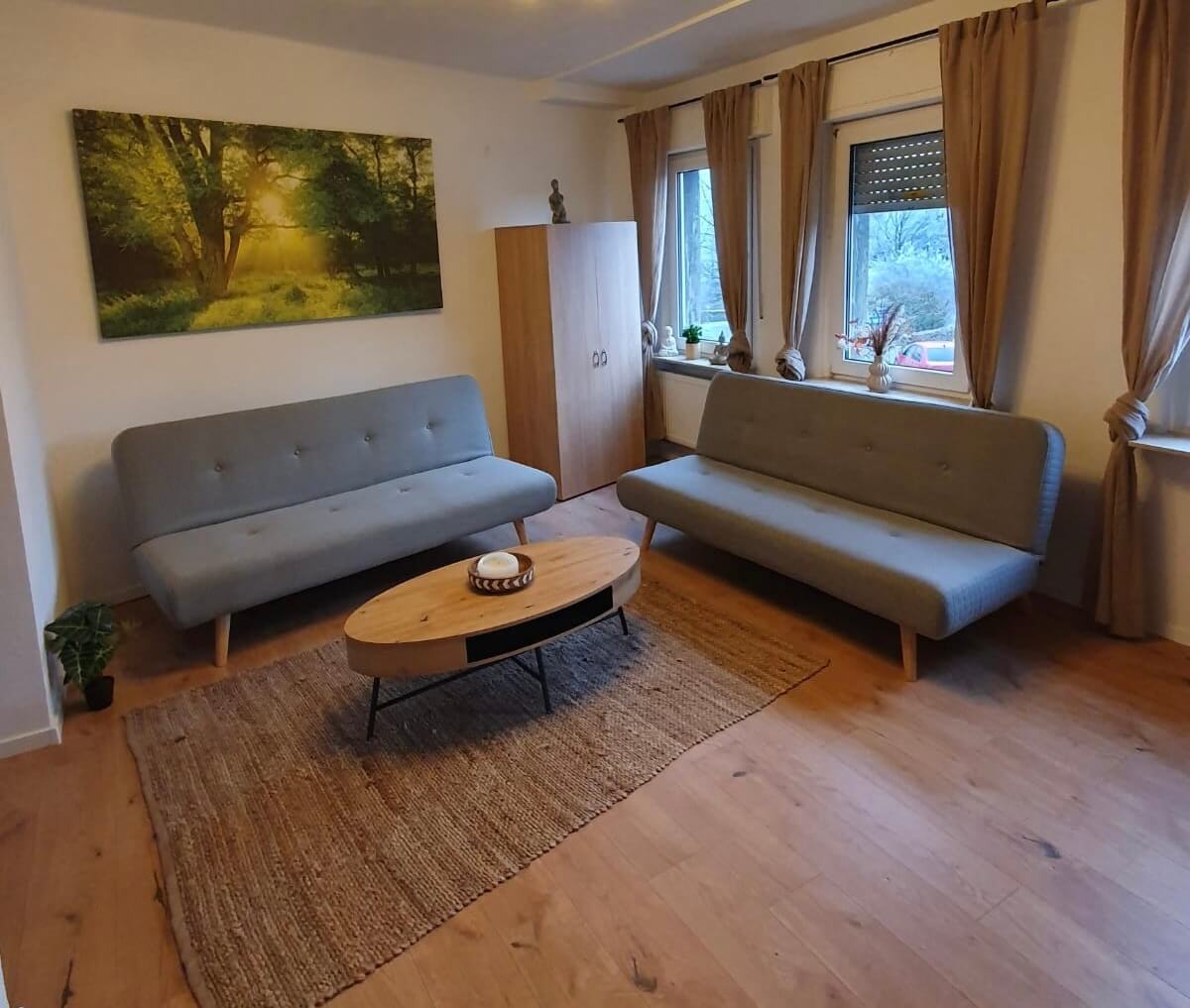 Helle Ferienwohnung in Lippstadt – Modern & voll ausgestattet im 1. Obergeschoss Willkommen bei FlexHome – Ihrer Unterkunft für komfortables Wohnen auf Zeit in Lippstadt. Diese attraktive, sehr helle Ferienwohnung im 1. OG bietet Ihnen zwei stilvolle Zimmer, die bereits vollständig möbliert und mit wichtigen Elektrogeräten ausgestattet sind. Das moderne und großzügige Wohnkonzept schafft Raum zur freien Entfaltung – ideal für Familien, Gruppen, Paare oder Geschäftsreisende. Zur hochwertigen Ausstattung gehört eine praktische Einbauküche, die mit allen wichtigen Küchenutensilien bestückt ist – perfekt für Kochen, Frühstücken und gemeinsames Genießen.